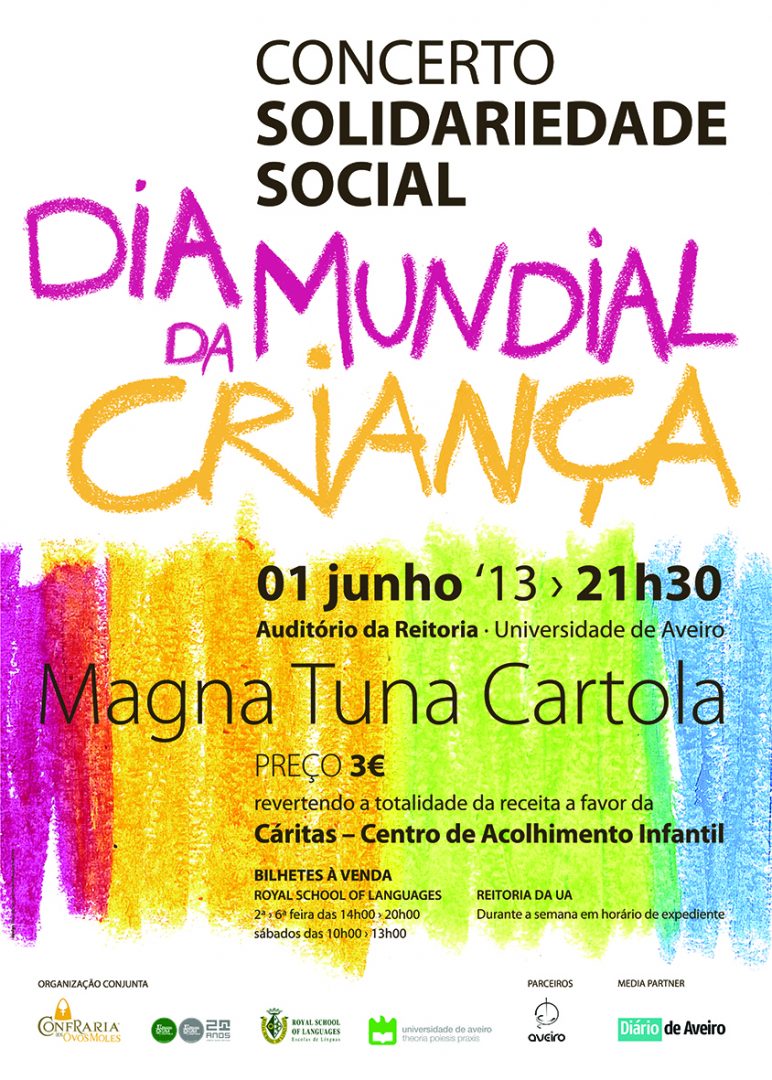 Vai decorrer no dia 1 de Junho, Dia Mundial da Criança, no Auditório da Reitoria da Universidade de Aveiro, um Concerto De Solidariedade Social, a favor da Cáritas- Centro de Acolhimento Infantil Esta é uma organização conjunta da Confraria dos Ovos Moles, Magna Tuna Cartola, Royal School of Languages, Universidade de Aveiro e tem como […]